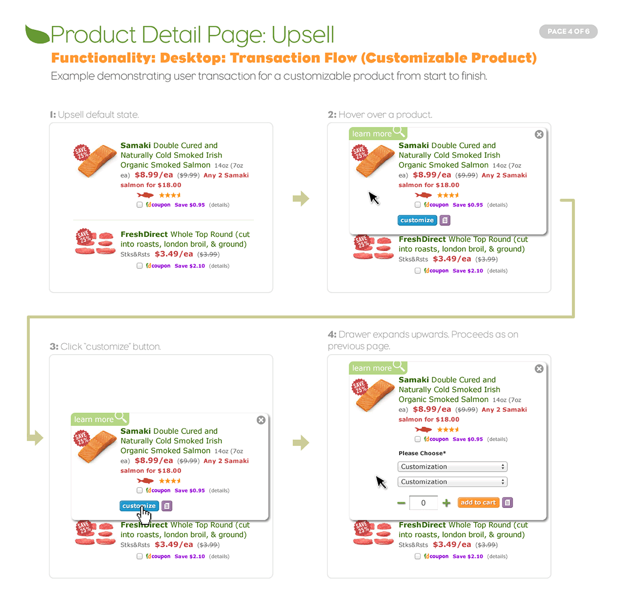 Due to the nature of this relatively short-term role, I don't have much work to show here aside from dozens and dozens of PDF documents. Below is a selection of UX documentation I created for the FreshDirect app and website.