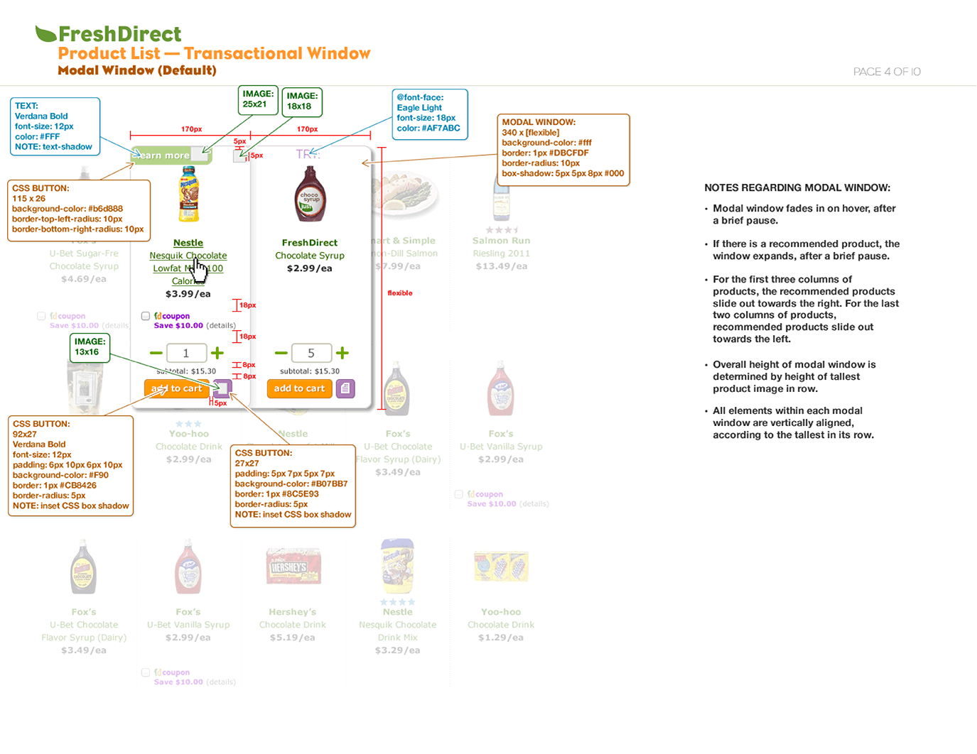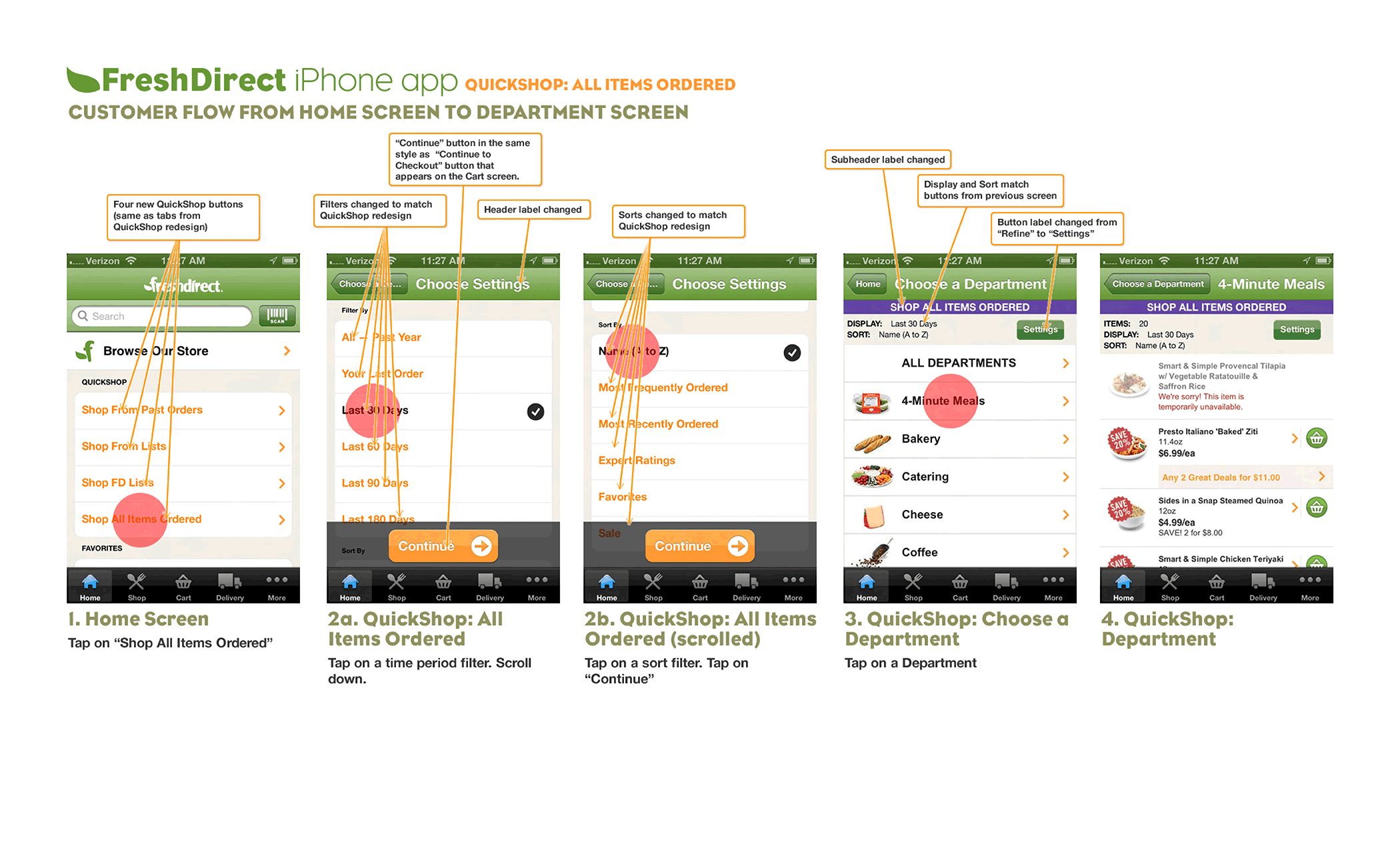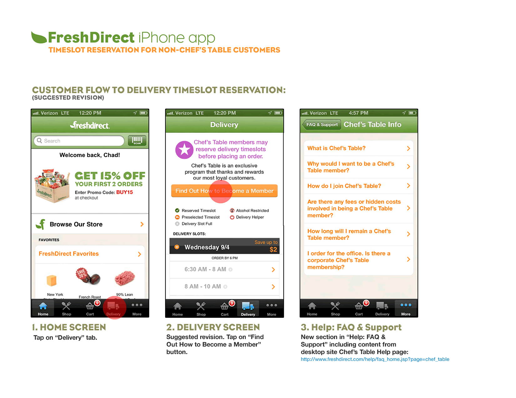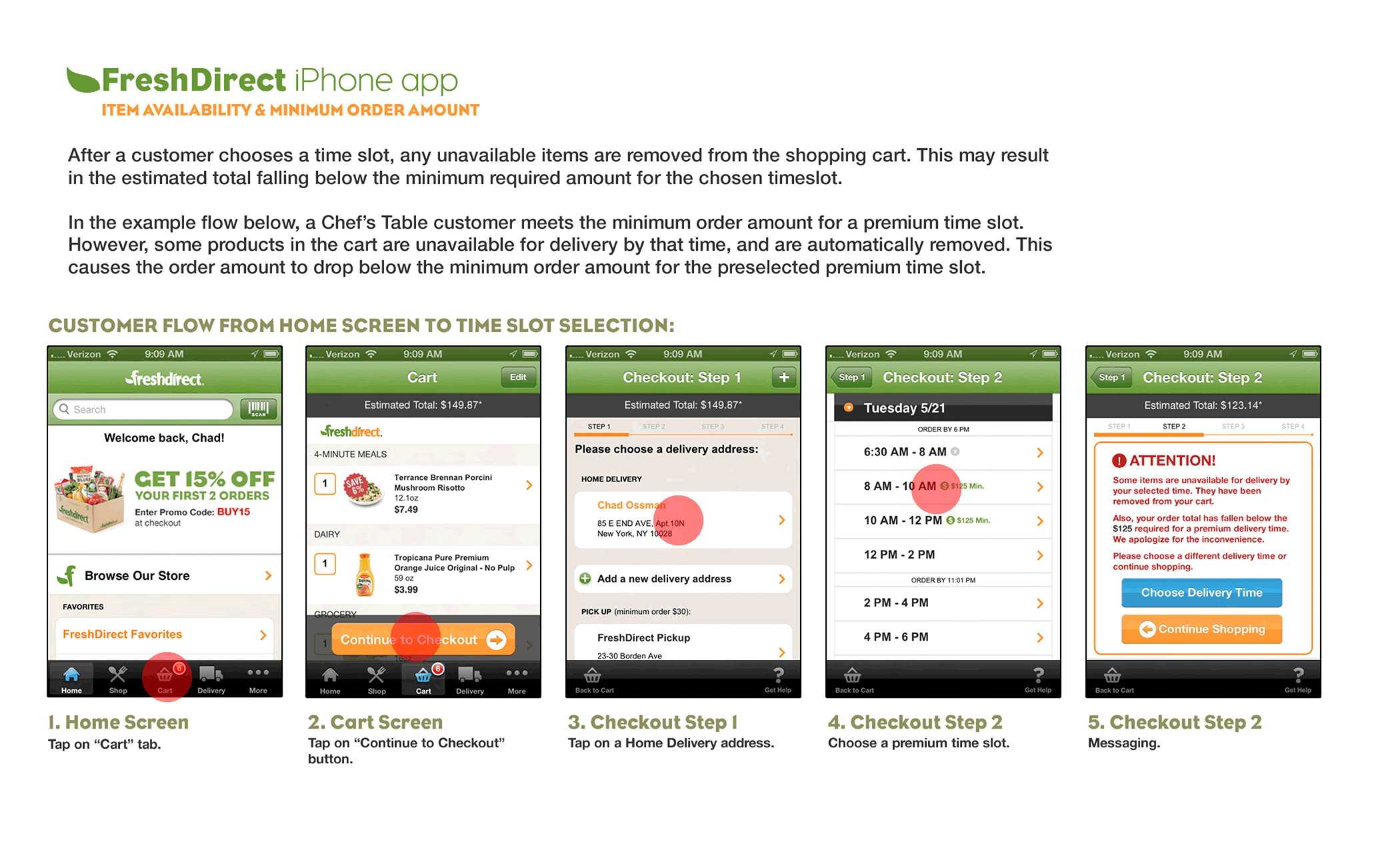 Due to the nature of this relatively short-term role, I don't have much work to show here aside from dozens and dozens of PDF documents. Below is a selection of UX documentation I created for the FreshDirect app and website.