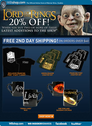 A selection of the many HTML marketing emails I designed and built for Warner Bros. and associated properties, including The Lord of the Rings, Batman, and Looney Tunes.